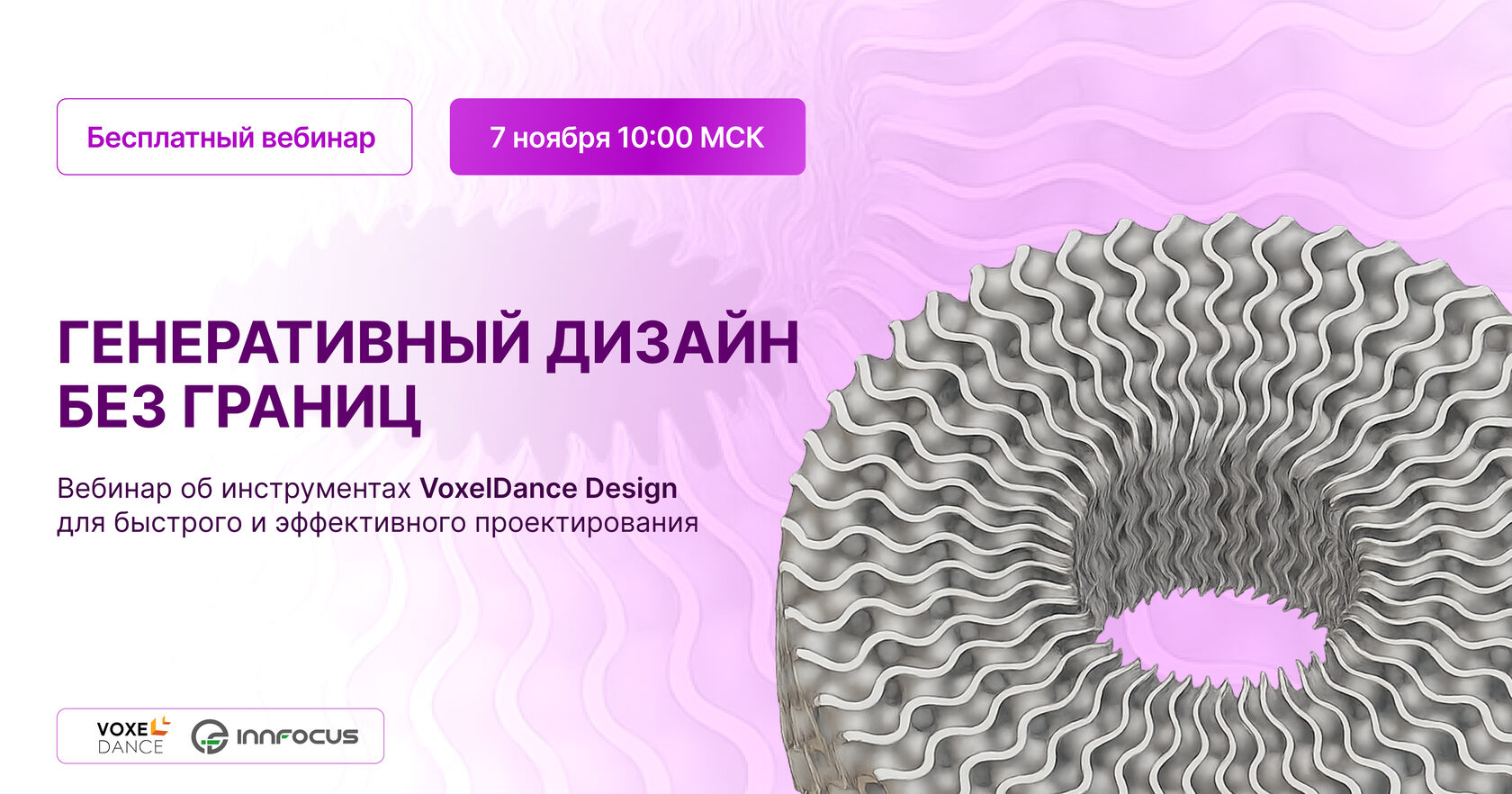 7 ноября в 10:00 (МСК) состоится онлайн-вебинар «Генеративный дизайн без границ», посвященный VoxelDance Design — новому программному решению для генеративного дизайна и аддитивного проектирования. Регистрация открыта по ссылке.