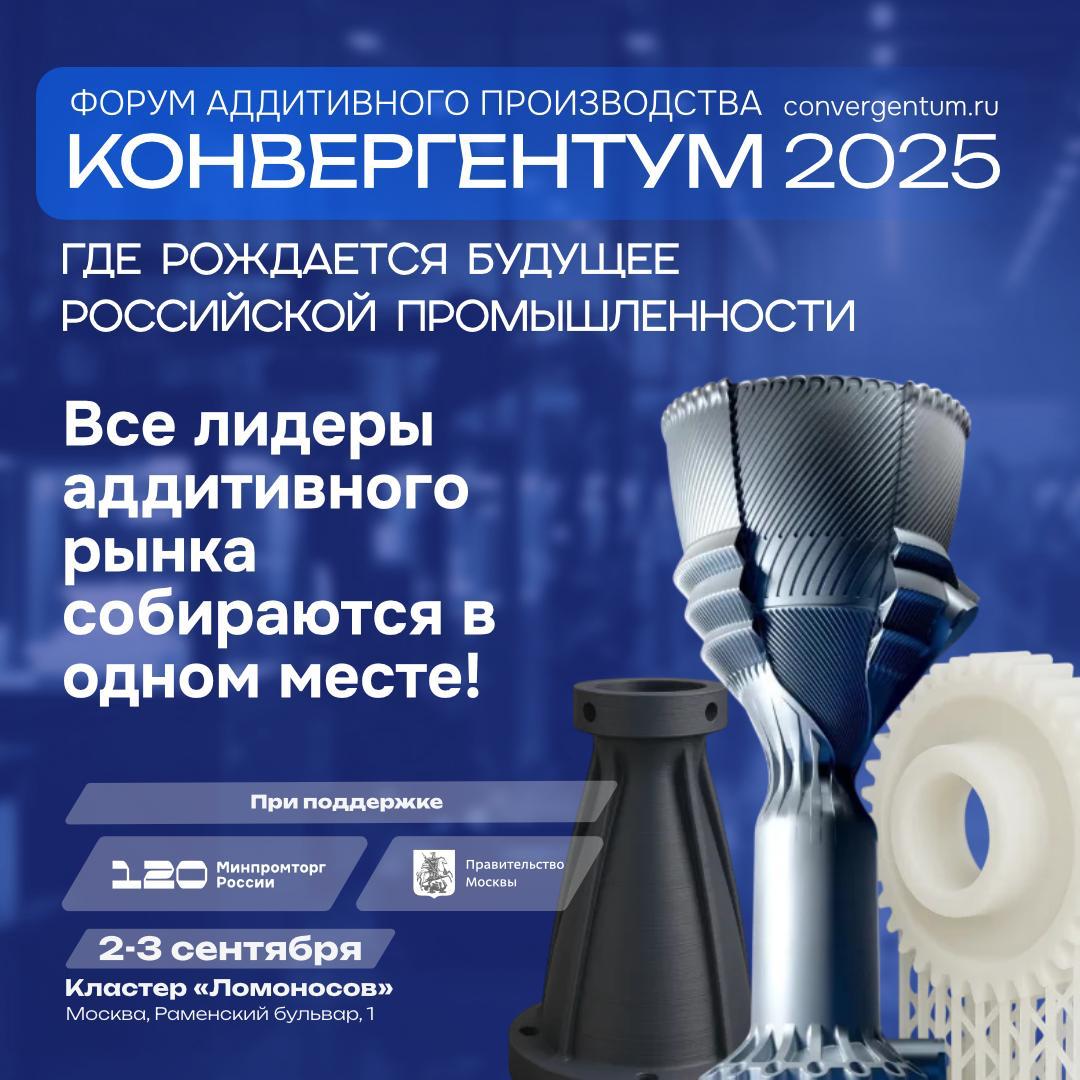 «Конвергентум» – значимое событие отрасли, посвященное практическому внедрению аддитивных технологий в промышленность. Форум объединит производителей оборудования и материалов, интеграторов, представителей бизнеса и госструктур, а также экспертов отрасли. Организатором выступает Клуб аддитивных технологий при поддержке Минпромторга России и Правительства Москвы.